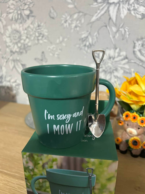 I'm Sexy and I Mow It Novelty Mug And Shovel Tea Spoon.